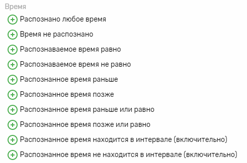 Для условий, кроме «Распознано любое время» и «Время не распознано» необходимо указать следующие настройки: