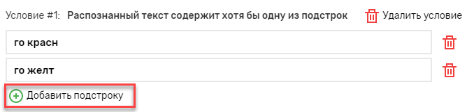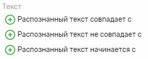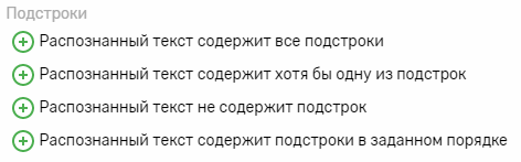 Настройки подстрок указывают, какие подстроки должен или не должен содержать распознанный текст. Можно указывать любое количество подстрок.