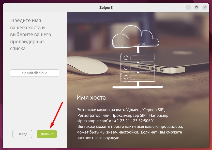 Следующим шагом ZoiPer предложит указать сип прокси или сип сервер, оставляем сервер по умолчанию и нажимаем кнопку «Дальше».