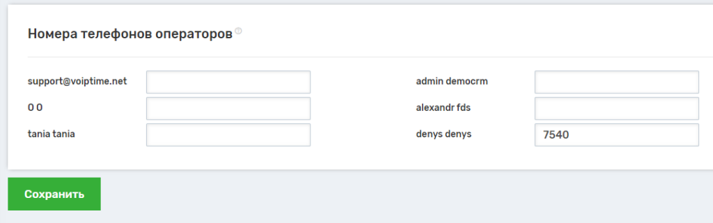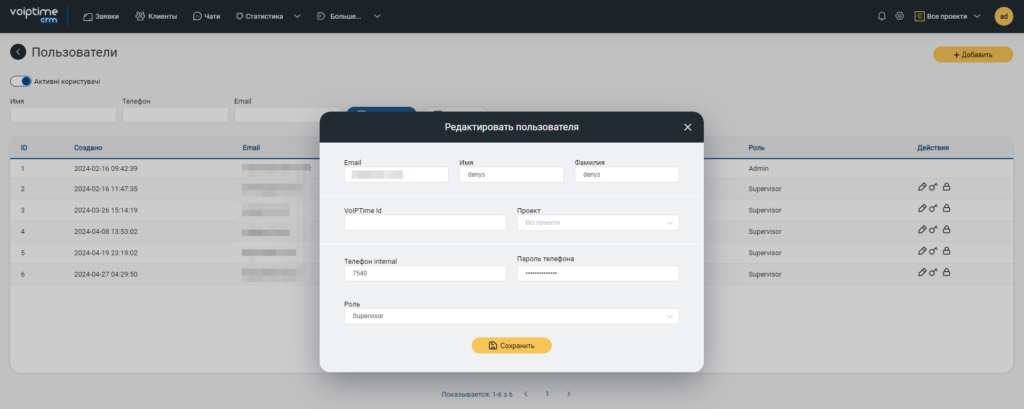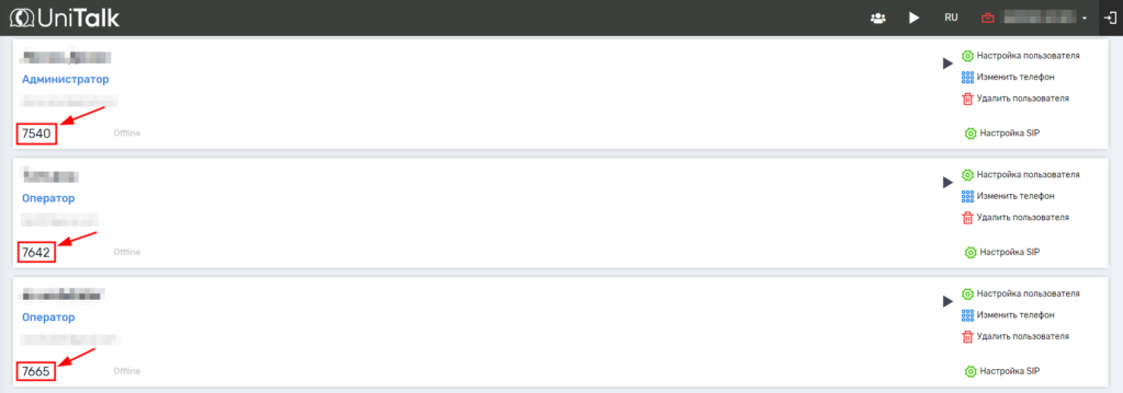 5. Следующий шаг — закрепление за пользователями CRM-системы номеров SIP линий. Эти номера можно посмотреть в личном кабинете UniTalk в разделе «Пользователи.»