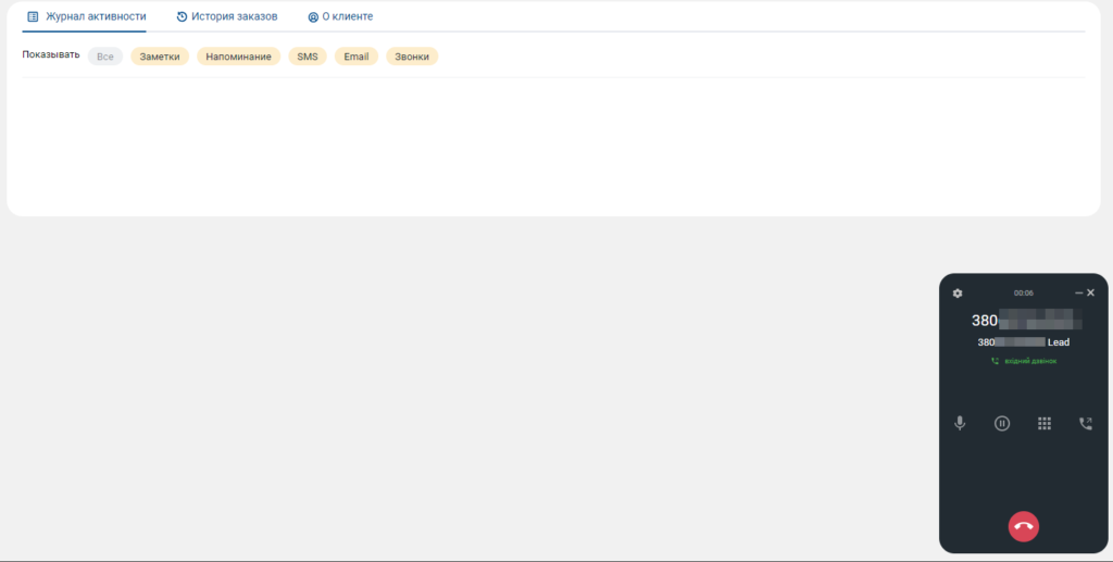 Входящие звонки также фиксируются в CRM.