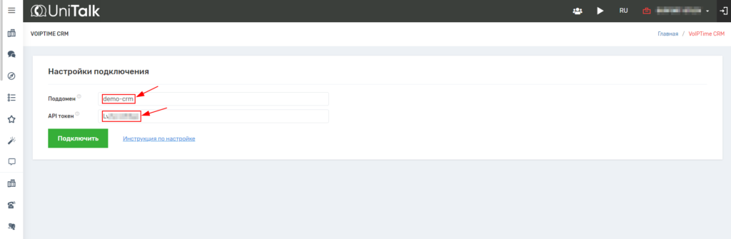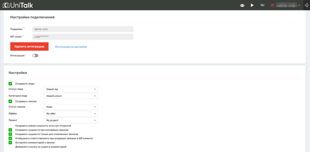 Подключение и настройка интеграции IP-телефонии UniTalk с VoIPTime CRM
