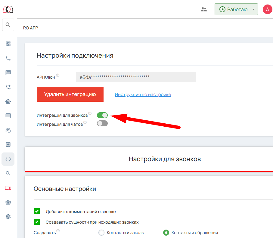 Теперь можно переключателем включить «Интеграцию для звонков».