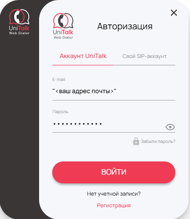 2.1. Авторизация с использованием данных личного кабинета UniTalk