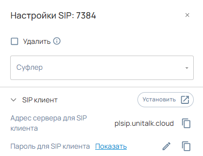 Эти данные можно найти в личном кабинете UniTalk вашего проекта в разделе «Пользователи», где необходимо получить доступ к информации о SIP-линии с помощью кнопки в виде шестеренки