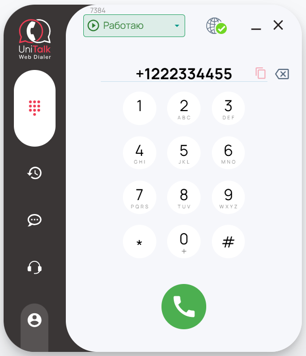 При использовании UniTalk Web Dialer с аккаунтом Unitalk вы можете изменять рабочий статус прямо из UniTalk Web Dialer.