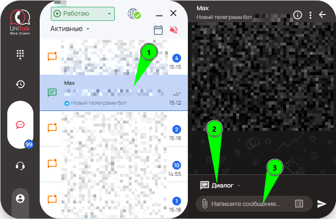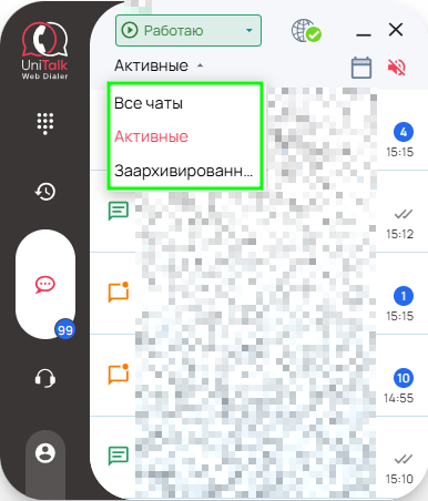 Вы также можете общаться в чатах через UniTalk Web Dialer.