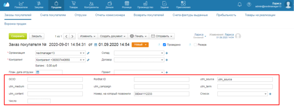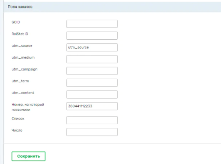 Вы можете настроить, какая информация будет отправляться в дополнительные поля заказа при его создании. Это позволит Вам отслеживать источники заказа и собирать данные для оптимизации рекламной кампании.