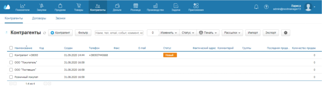 • Автоматическое создание и обновление контрагентов.