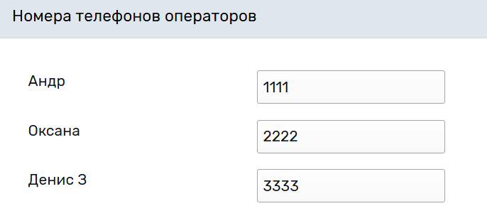 Также необходимо указать номера внутренних линий сотрудников чтобы работала кнопка «Позвонить» в карточке контрагента.