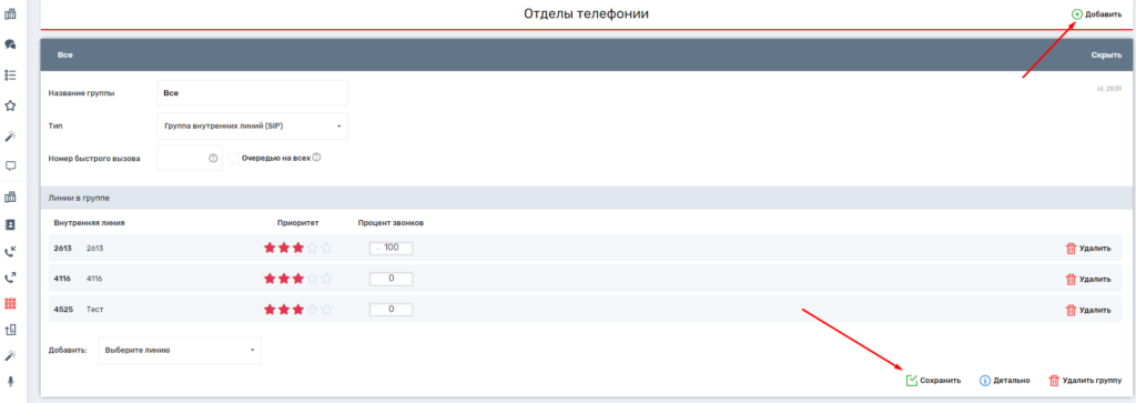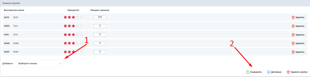 5. Нажмите “Добавить” возле блока Линии в группе столько раз, сколько сотрудников в отделе.