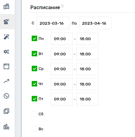 По умолчанию выбрана стандартная, как для Киева, рабочая неделя. Если ваши клиенты — юр. лица и Вы планируете делать обзвон в рабочее время, то «И так сойдет!».