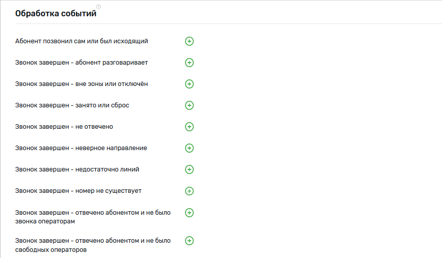 Настройка определяет, что делать, если абонент совершит прямой входящий, трекинг входящий звонок или оператор совершит исходящий звонок абоненту.