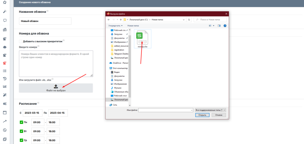 Подготовка и добавление списка номеров людей которых нужно обзвонить