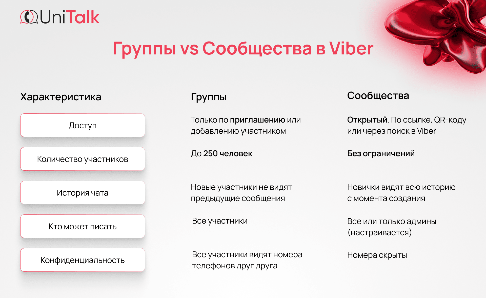 Если вы ищете, как сделать массовую рассылку в Viber более чем на 50 получателей, обратите внимание на групповые чаты и сообщества. Рассылки в них тоже бесплатные, а основное различие заключается в количестве участников и инструментах управления.