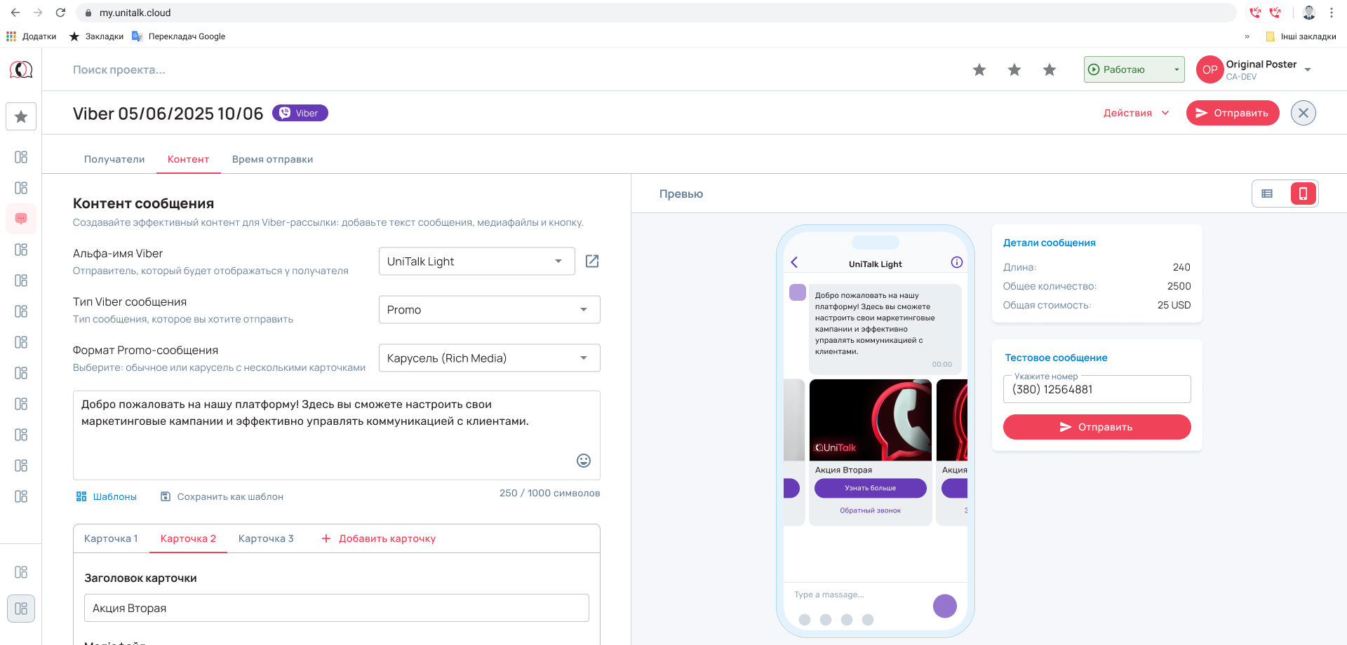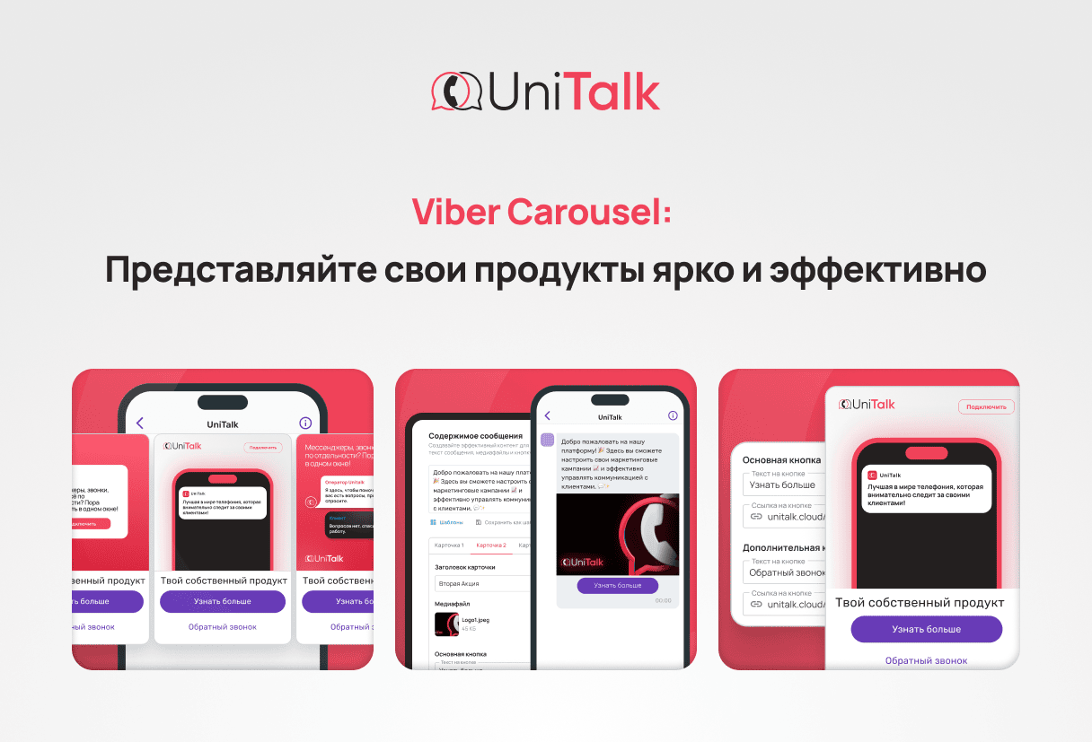 В нашей экосистеме этот инструмент называется Viber от UniTalk и имеет простой и удобный интерфейс для работы — можно рассмотреть его на основной странице продукта или во время тестирования.