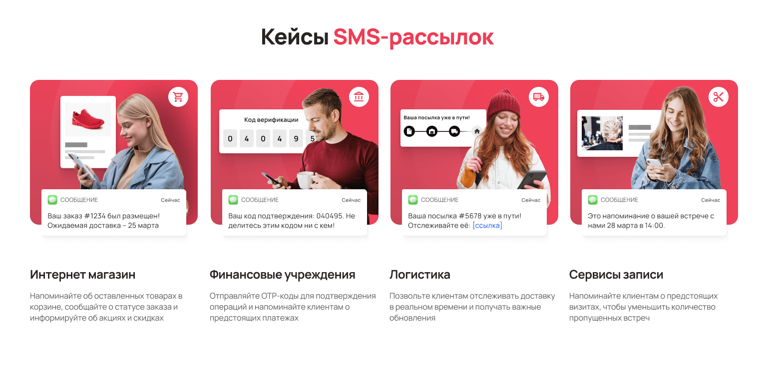 Вот несколько примеров того, как отправка смс решает конкретные боли бизнеса и увеличивает продажи.