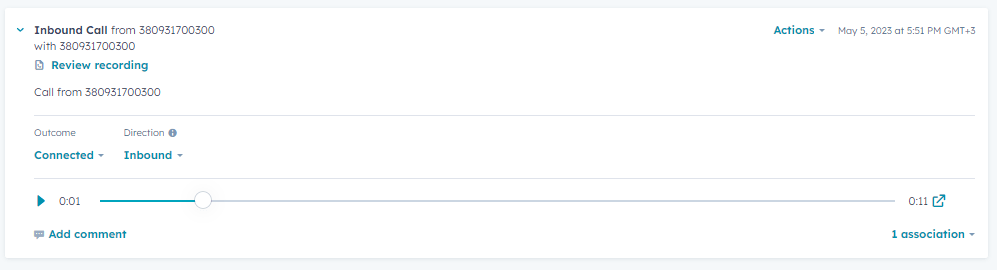 - возможность прослушать запись телефонного разговора в карточке контакта.