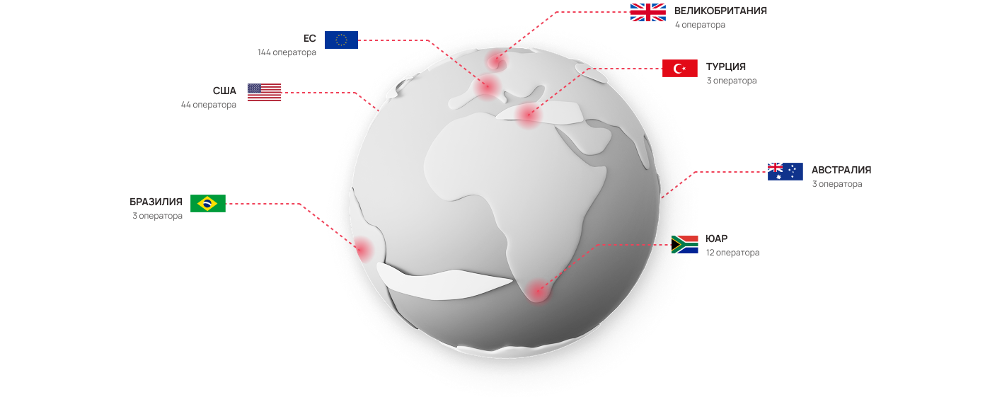 мобильных операторов в 200+ разных стран