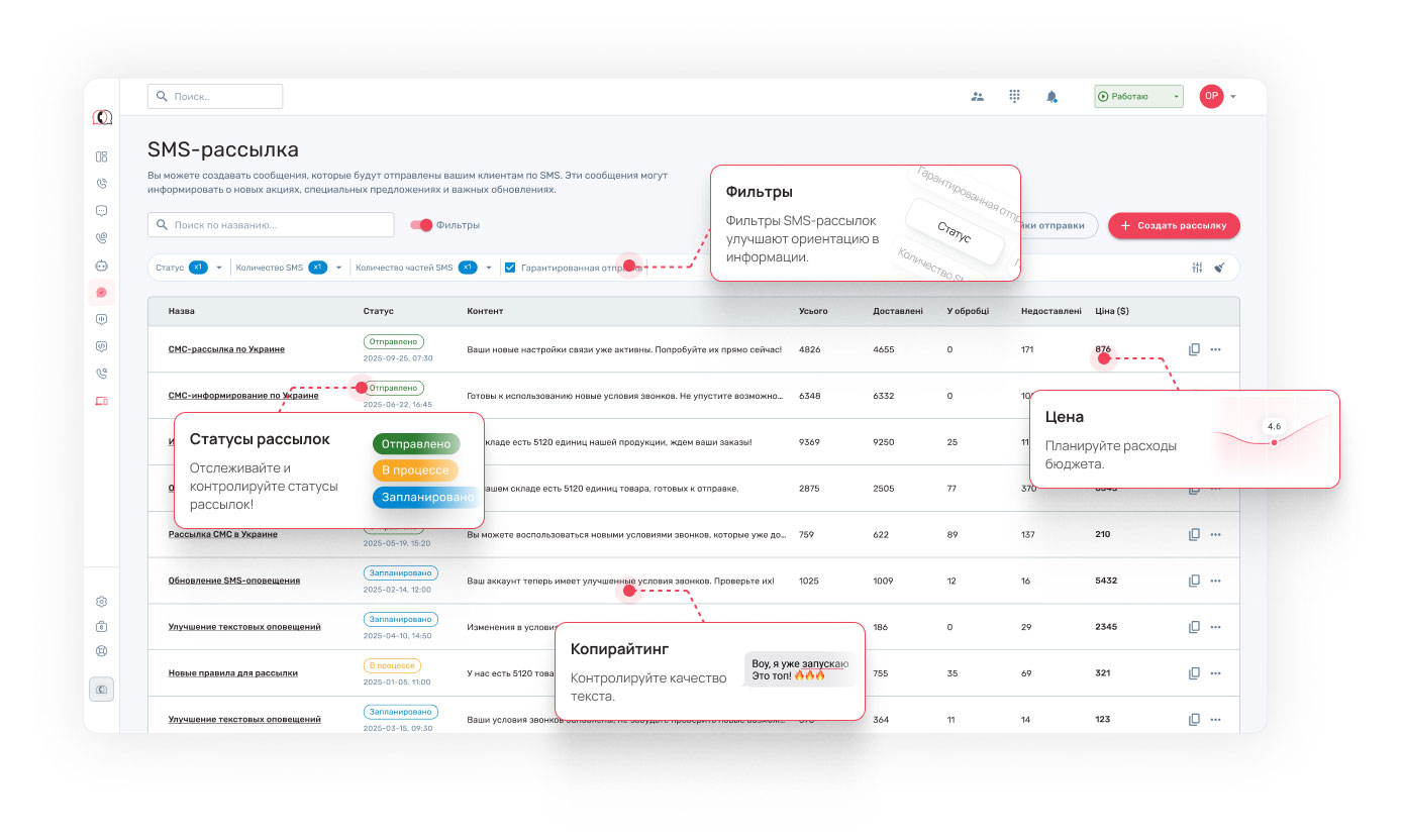 Надежный и универсальный инструмент для общения с клиентами: массовые и одиночные SMS, рекламные и транзакционные сообщения, международные и таргетированные рассылки. Мы помогаем бизнесу быть всегда на связи