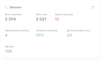 Наши дашборды показывают полную аналитику по эффективности обзвонов, звонкам и операторам. Вся ключевая информация — перед глазами. Подробная статистика по рабочим статусам и звонкам позволит иметь полный объем информации по процессам