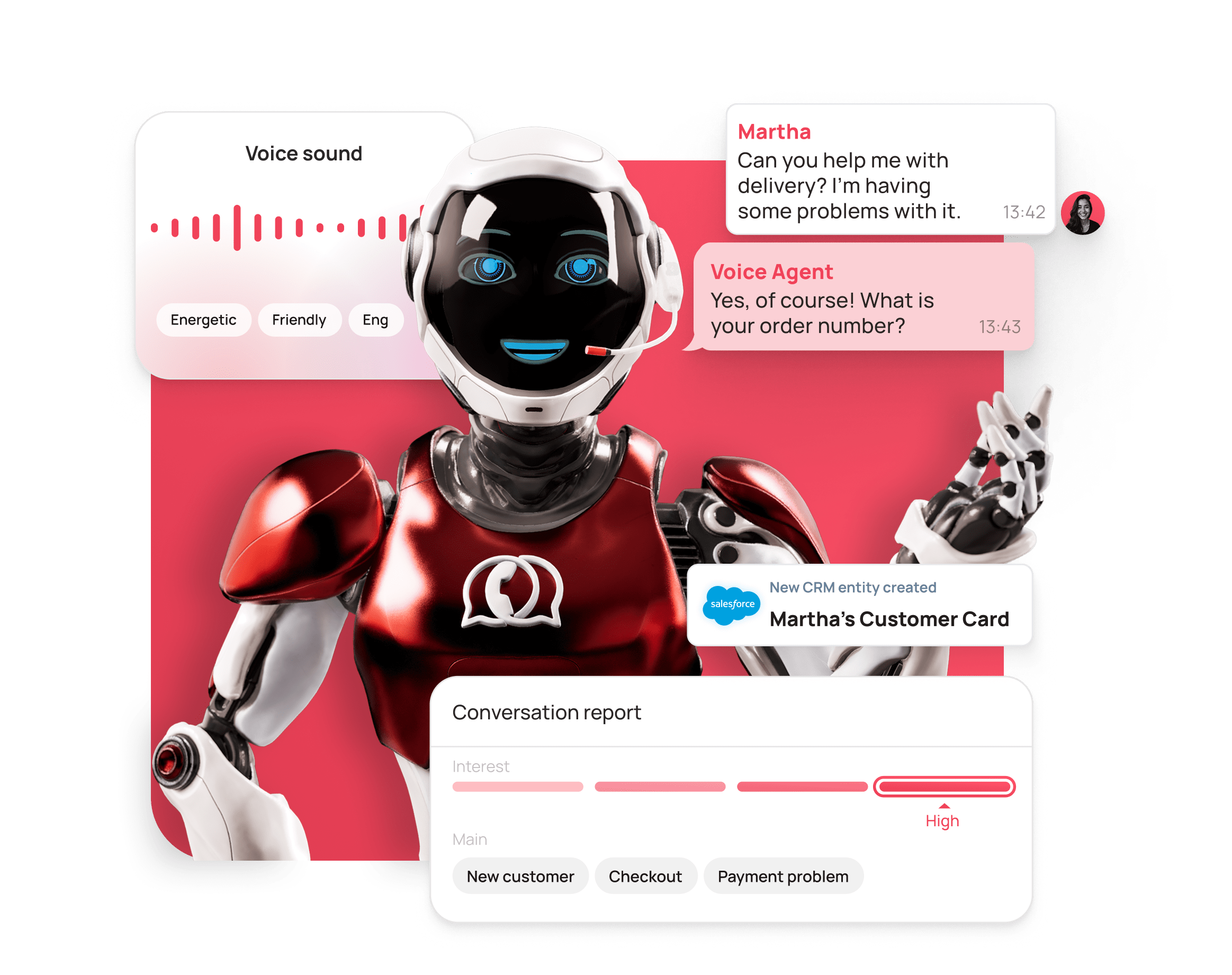 The Voice Agent will make a full cycle of selling your product or service, from identifying needs, consulting with the answer to the most atypical questions, to placing an order and recording it in your CRM
