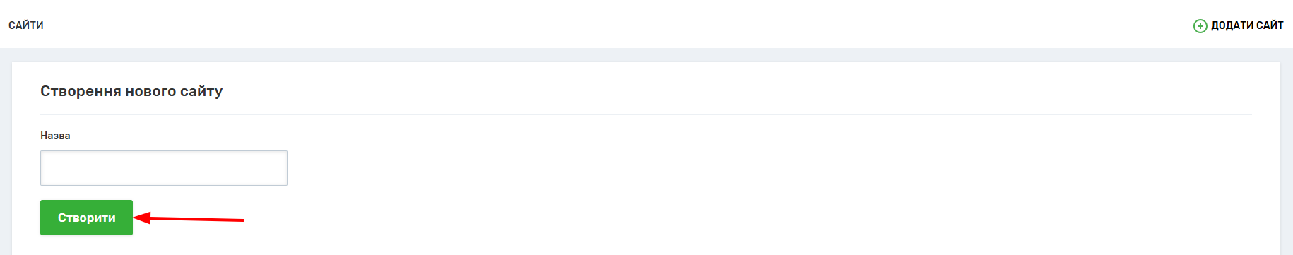2. Вкажіть посилання на Ваш сайт та натисніть “Створити”.