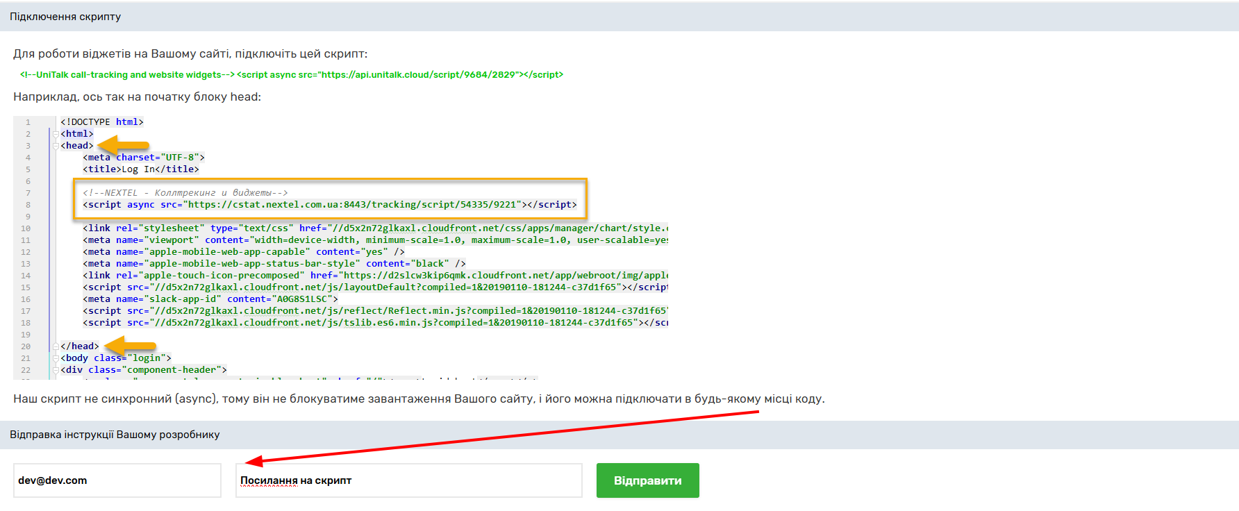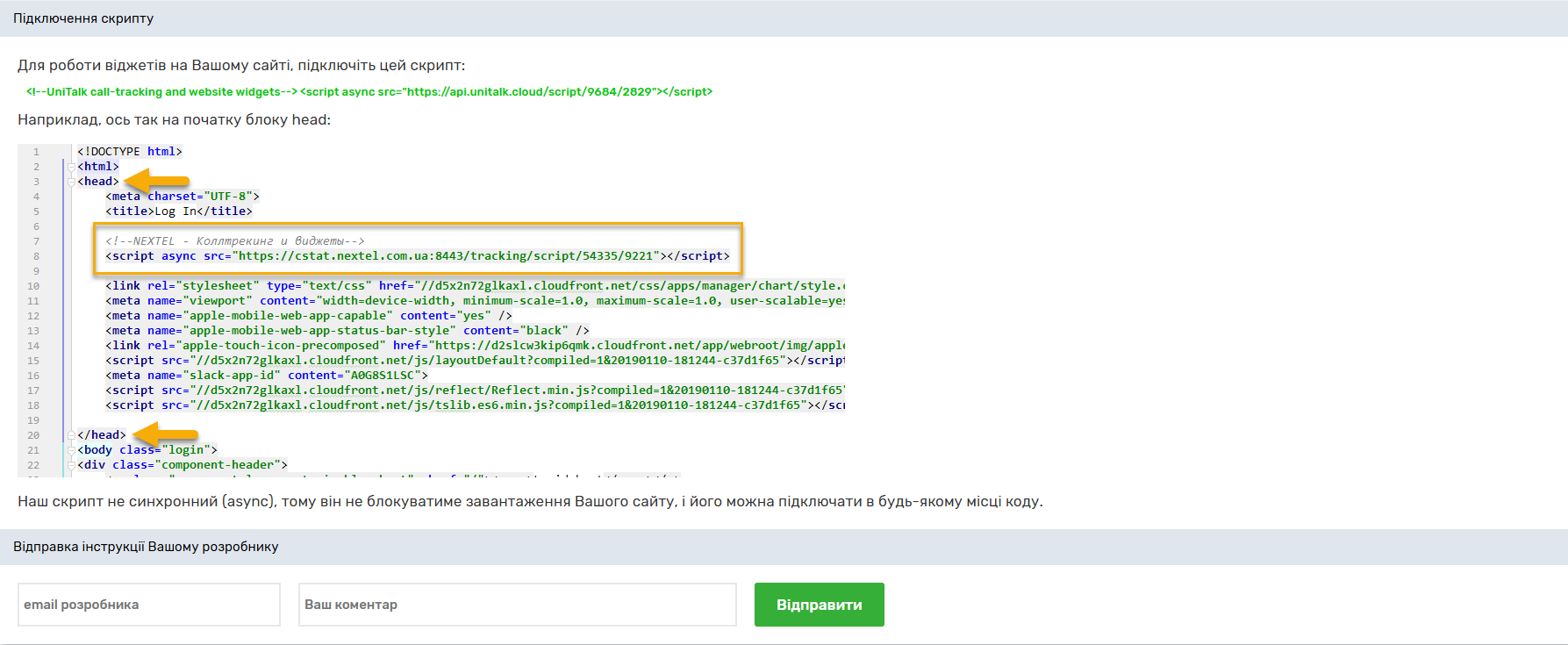 Встановлення скрипту у код сайту.