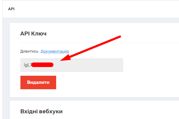 1. Знайдіть API-ключ вашого проекту в UniTalk. Для цього в особистому кабінеті UniTalk виберіть розділ «API та автоматизація» – «API» → скопіюйте ключ