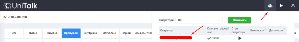 Щоб переглянути внутрішні номери, переходимо в розділ “моніторинг користувачів”.