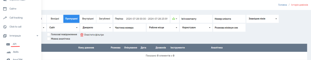 Щоб його отримати, в особистому кабінеті Unitalk переходимо в розділ “інтеграція API”.