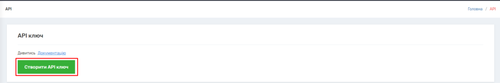 Натисніть на зелену кнопку “Створити” і скопіюйте API ключ: