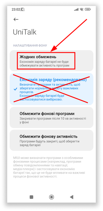 Окрім того, для забезпечення безперебійної роботи додатка у фоновому режимі необхідно скасувати системні обмеження його роботи: