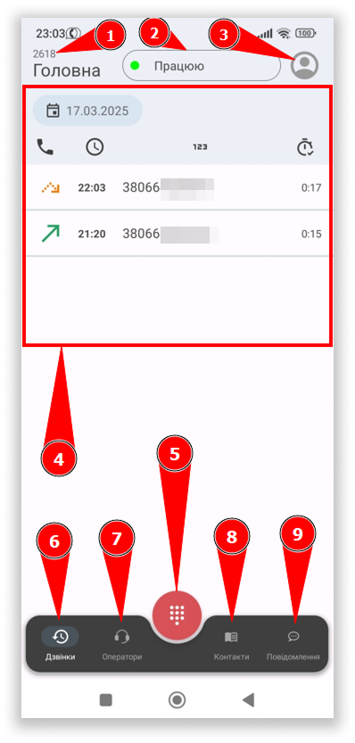 6. Кнопка переходу у розділ “Дзвінки”