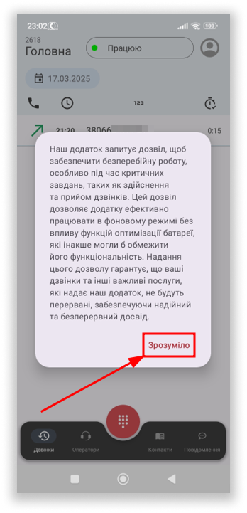 Авторизація пройдена! Під час першого відкриття застосунку для його коректної роботи необхідно надати дозволи на: запис аудіо, надсилання сповіщень та здійснення телефонних дзвінків: