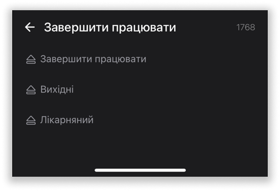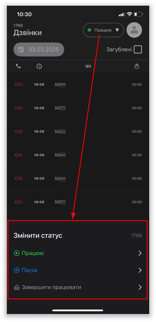 Щоб змінити статус, натисніть на кнопку з поточним статусом роботи.