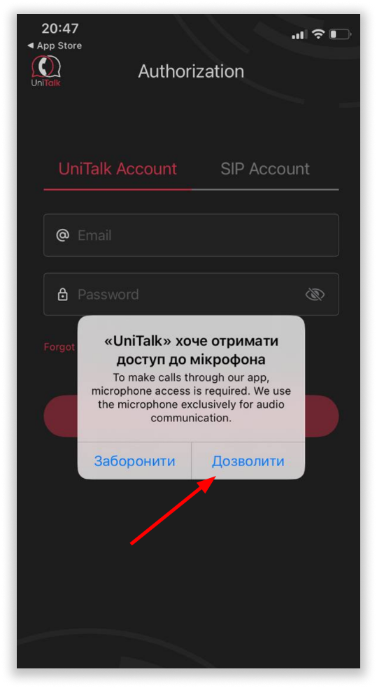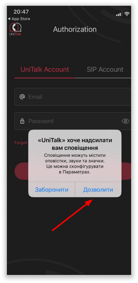 Інструкція з налаштування додатка Unitalk Mobile App на IOS