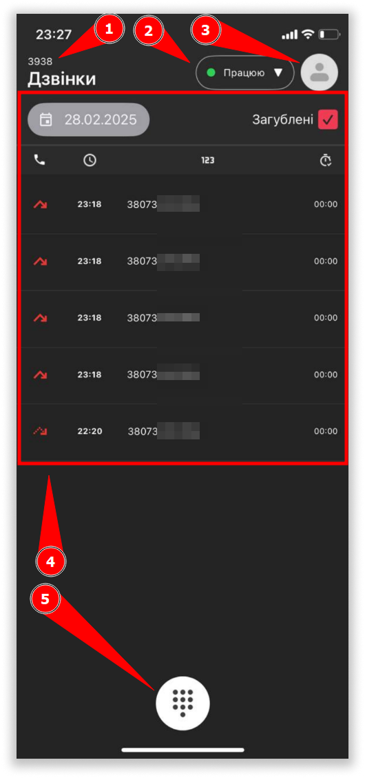 - Історія дзвінків (із можливістю перегляду історії дзвінків за інший день та переглядом лише загублених дзвінків, тобто тих дзвінків, на які не було здійснено передзвін)