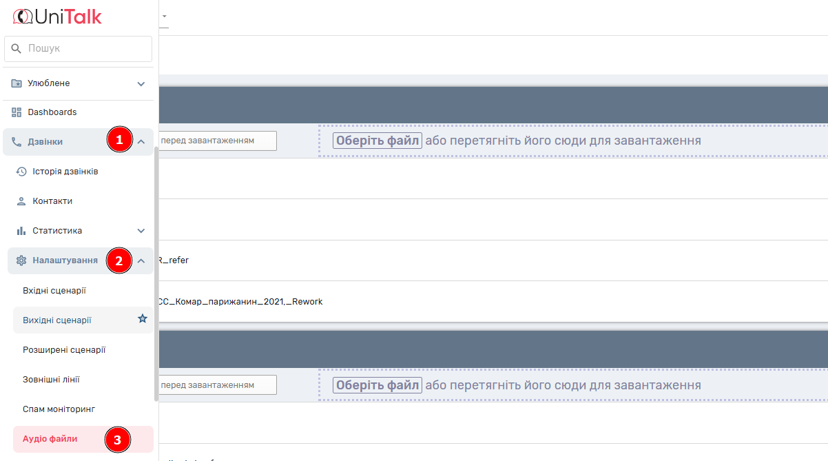 Другий етап. Завантаження аудіофайлів до бібліотеки UniTalk.