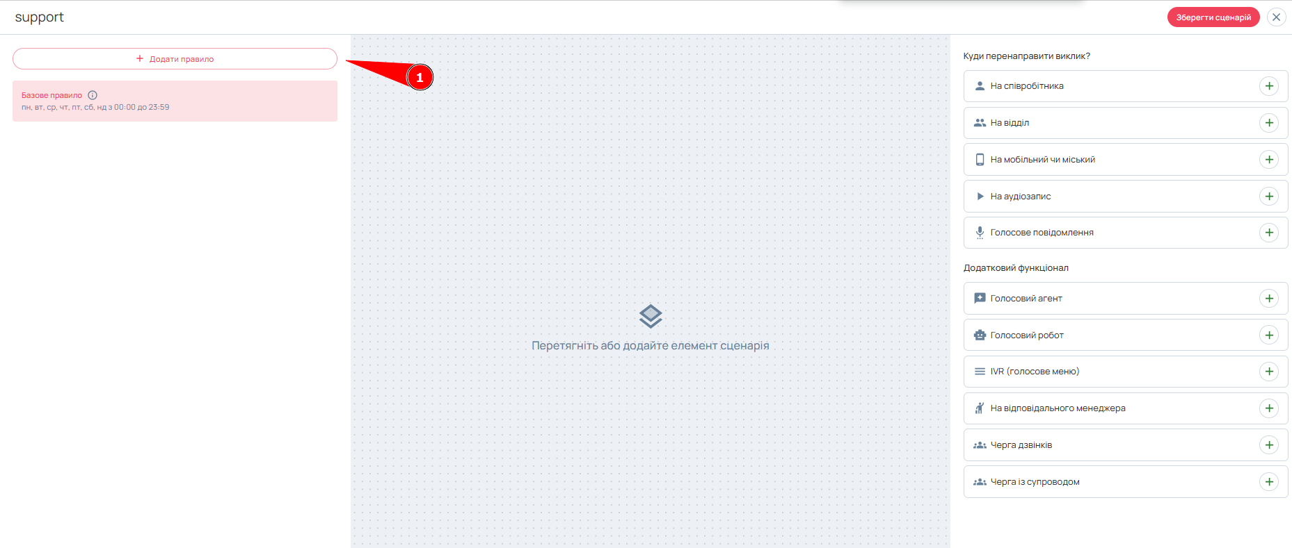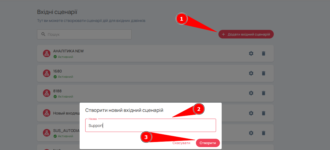 Переходимо до розділу Дзвінки – Вхідні сценарії