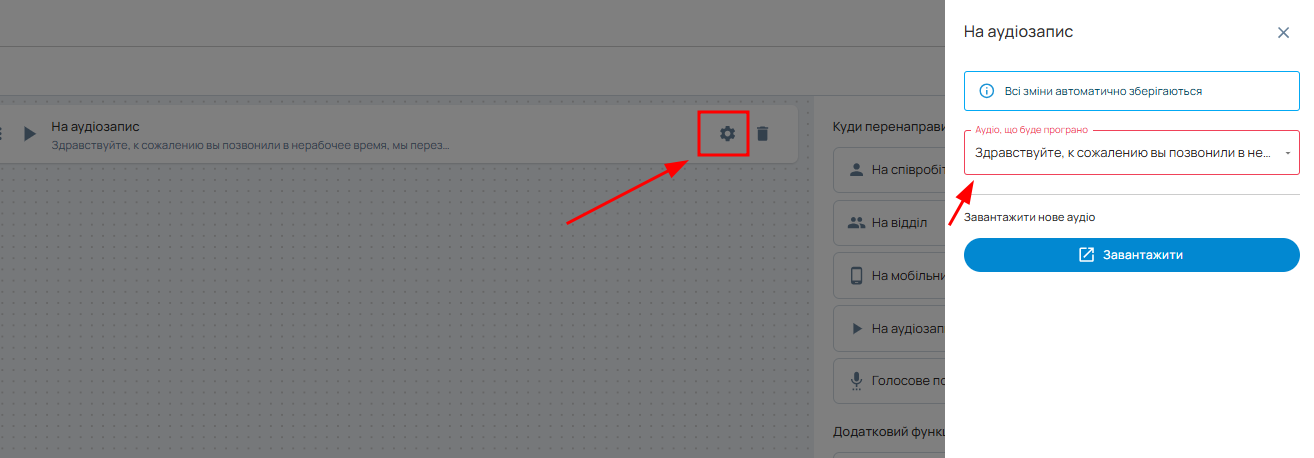 Після створення та завантаження аудіо файлу, завантажте його в бібліотеку UniTalk (другий етап).