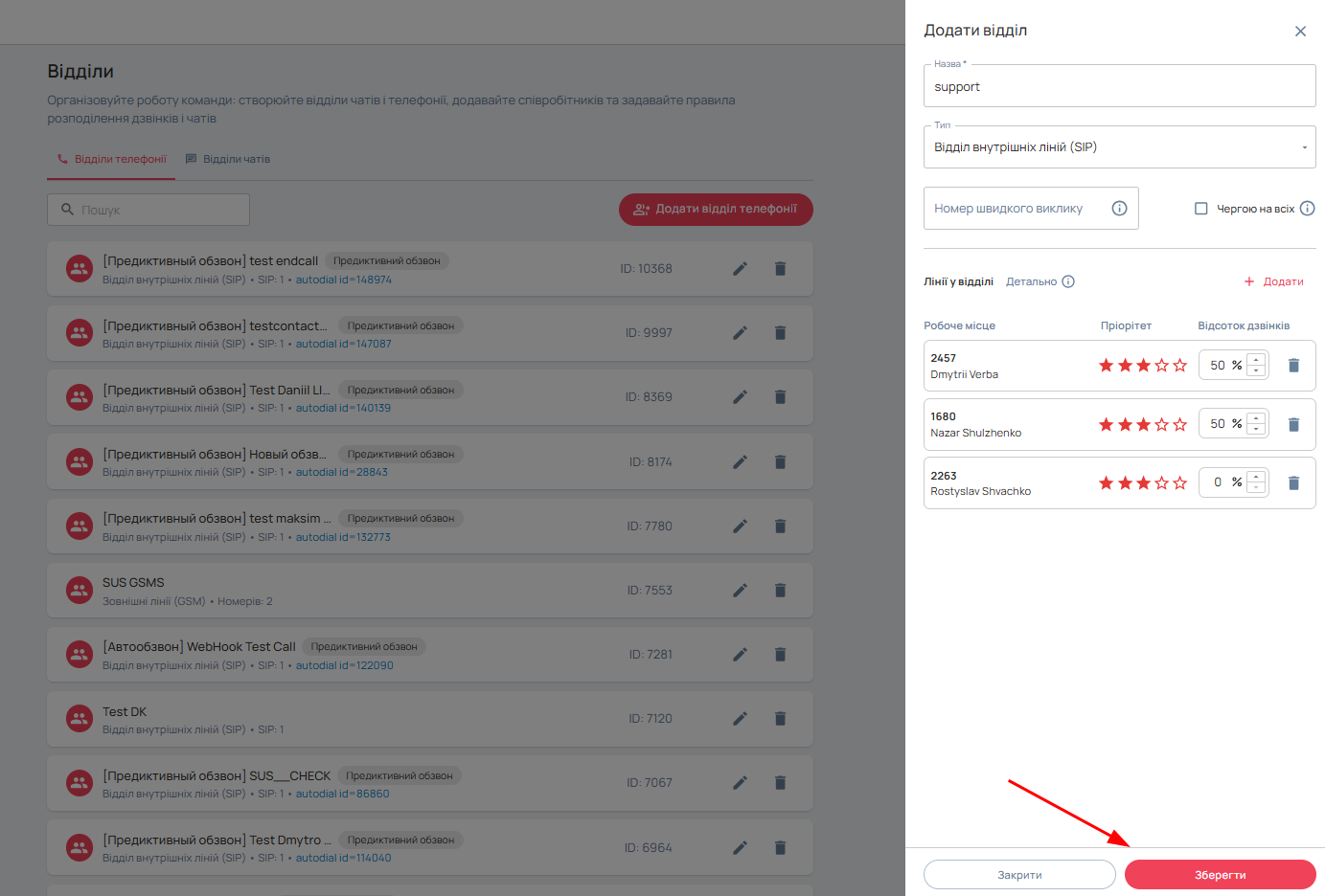 - Вказуємо номер швидкого набору для можливості зателефонувати до всього відділу одночасно.