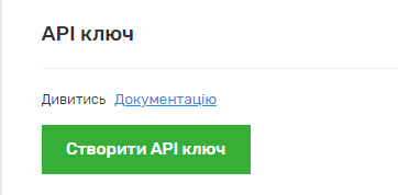 Примітка. Якщо ключ API не було попередньо створено, у відкритому розділі необхідно натиснути кнопку “Створити” (Мал. 2).
