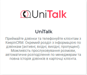 Інструкція з підключення та налаштування інтеграції UniTalk та KeepinCRM
