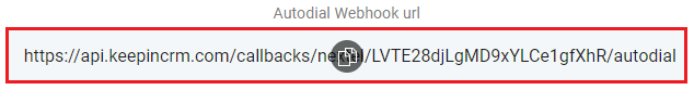 4. У нижній частині сторінки натисніть поле “Autodial Webhook url”;