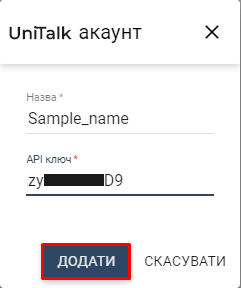 - вставити скопійований раніше ключ API у полі “UniTalk API Key”.
