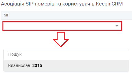 9. В блоці “Асоціація SIP номерів та користувачів KeepinCRM”: