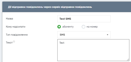 Приклад дії надсилання повідомлень, яка додається в пункті меню Обробка подій.