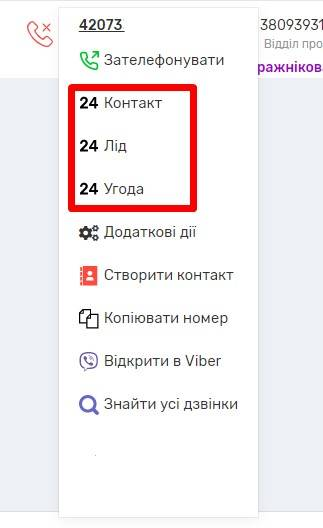 Якщо дана настройка включена, то в історії дзвінків будуть збережені посилання на контакт, лід або угоду, якщо вони існують. Також в історії дзвінків буде відображатися відповідальний співробітник та ім’я контакту/ліда.