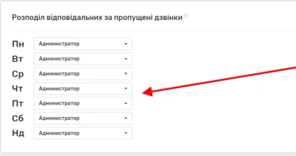 5. Виберіть відповідальних за пропущені дзвінки, залежно від днів тижня.